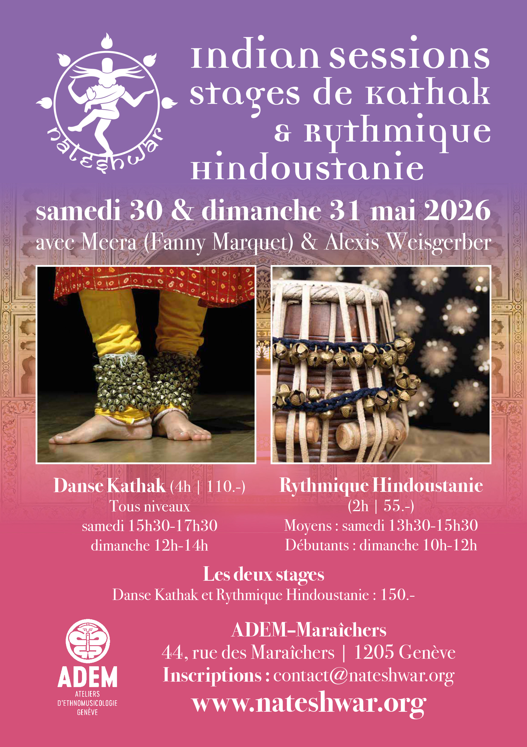 les deux stages danse kathak & rythmique hindoustanie | 150.-